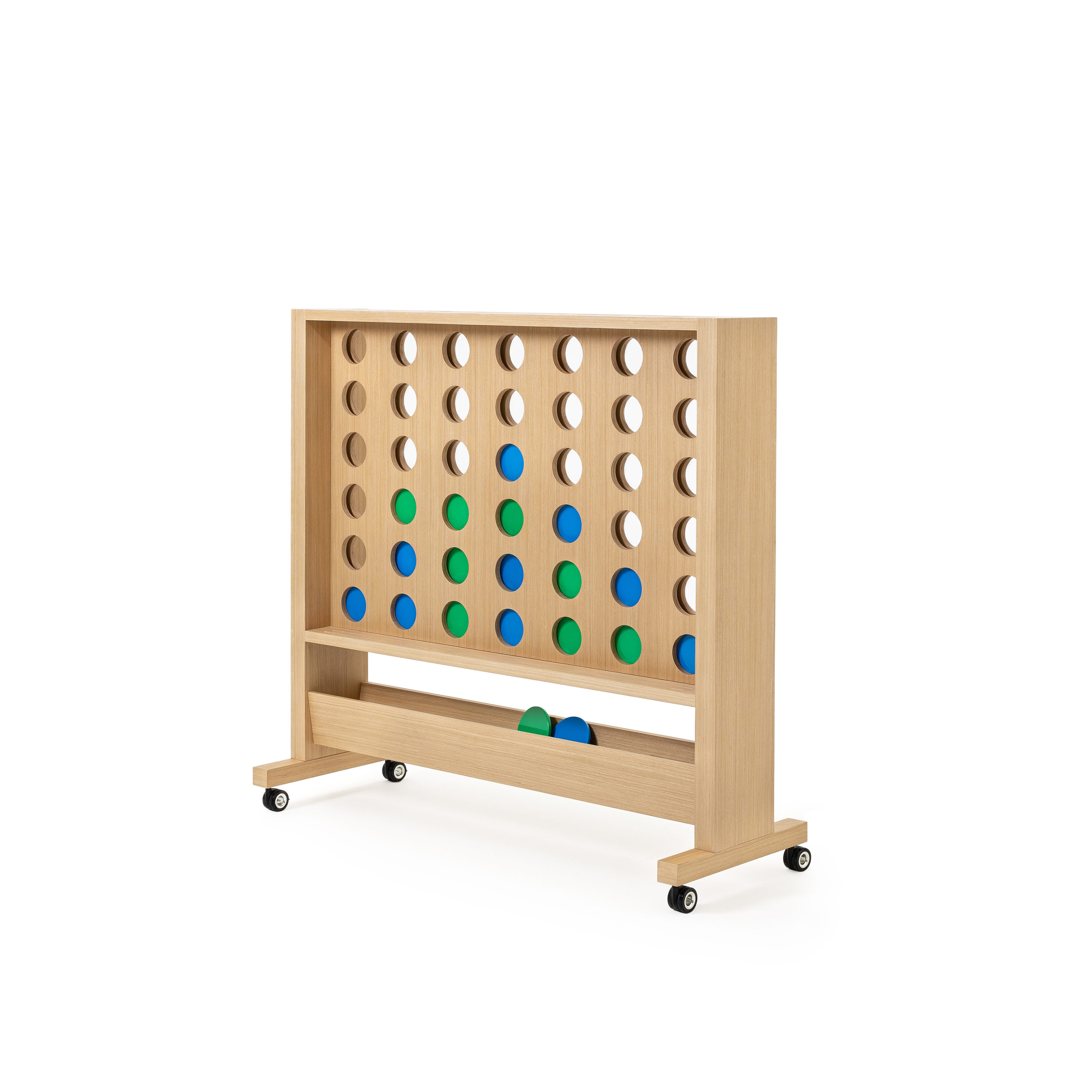 Playboard是一组功能齐全的可移动系列。既可用作空间隔板,也可作为白板、电视屏幕或展示架,每个单板都配有储存凳子的位置。另外增加巨大的游戏墙提供额外乐趣,在墙上可以展示公司徽标和有代表性的颜色。可选用天然木材或定制层压板完成,也可依据空间选择其他材料。