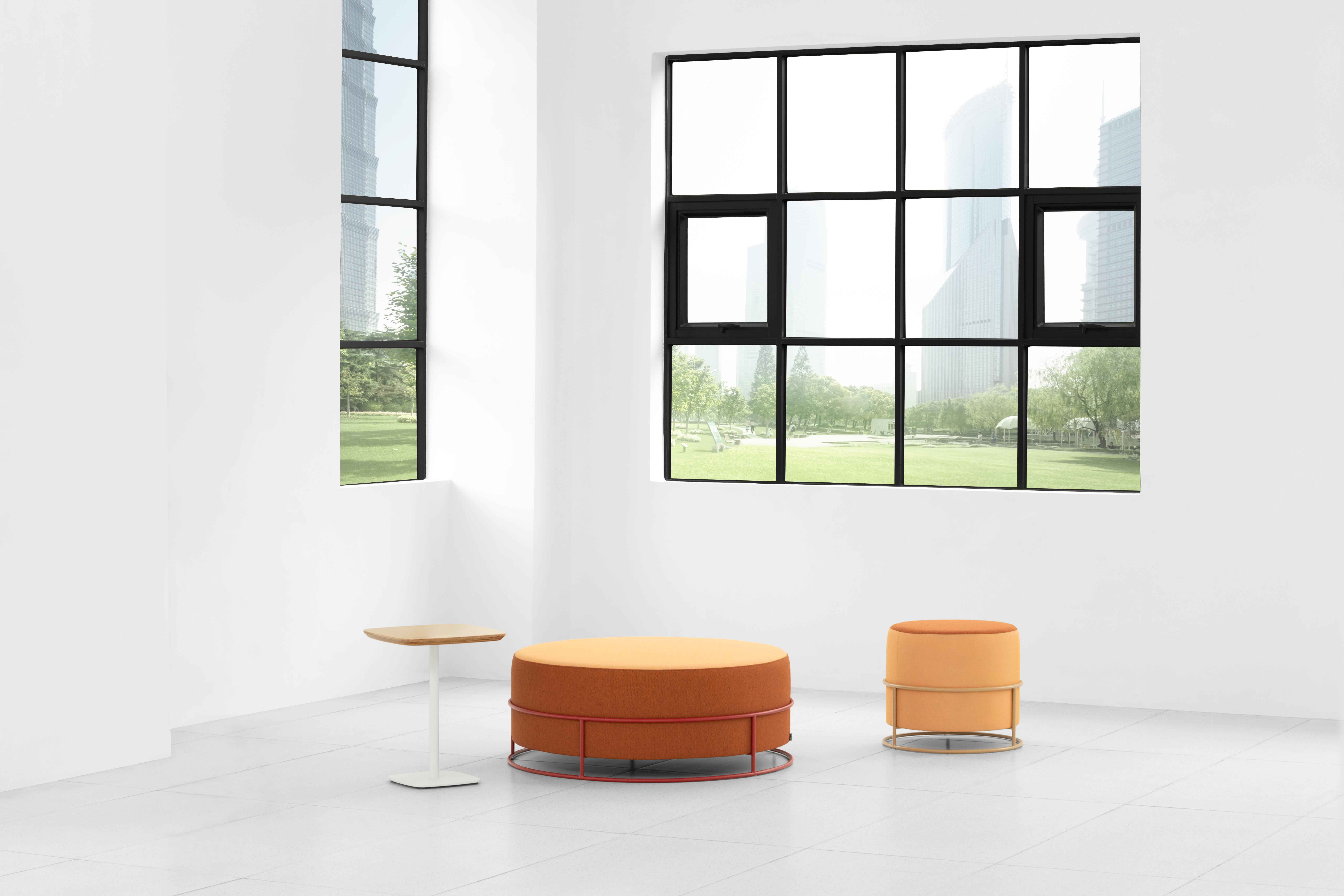 Tiara的设计旨在将经典圆形脚凳与简约金属框架相结合,提升整体美感,并提供多种颜色选择。它有多种尺寸可供选择,以适应不同的座位布局,非常适合在办公室进行轻松的交流与合作。